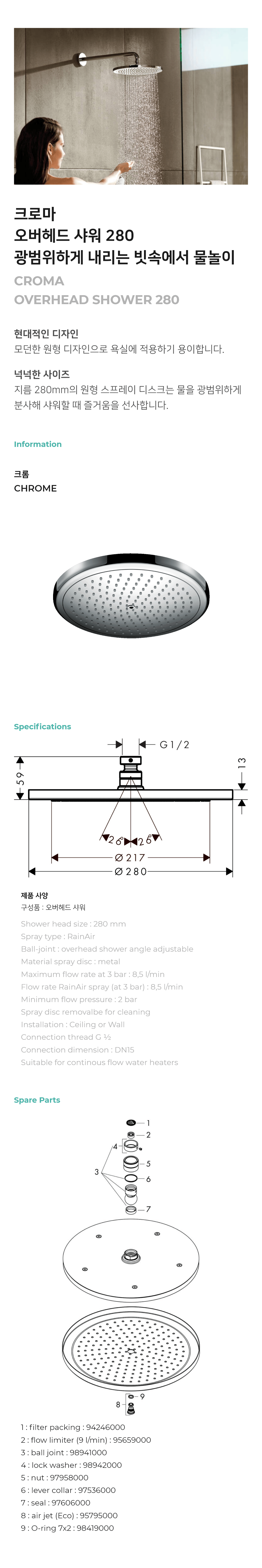크로마 오버헤드 샤워 280(Croma Overhead shower 280) - 26221000