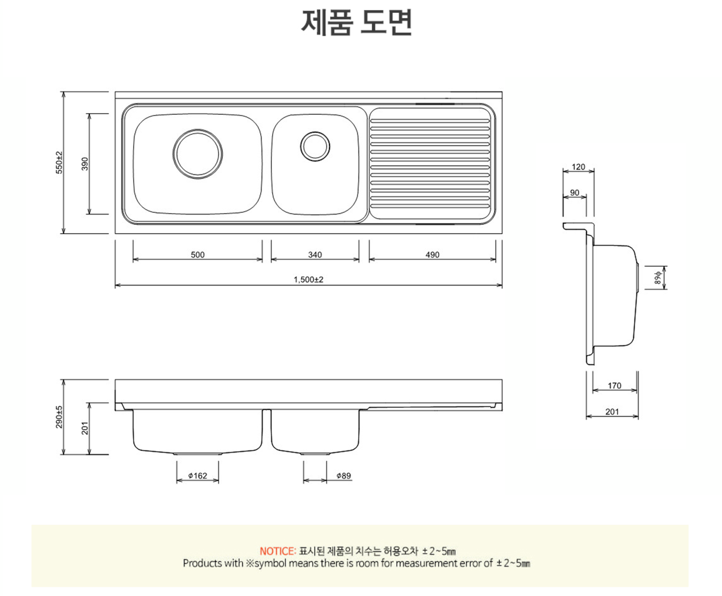 (가로, 세로 ±2mm / 높이 ±5mm)