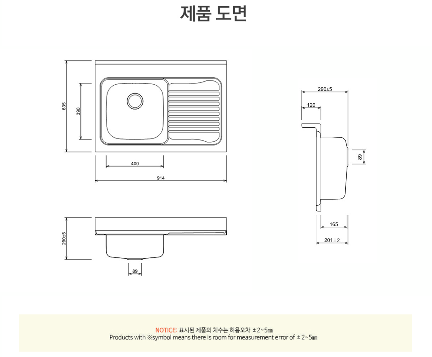 (가로, 세로 ±2mm / 높이 ±5mm)