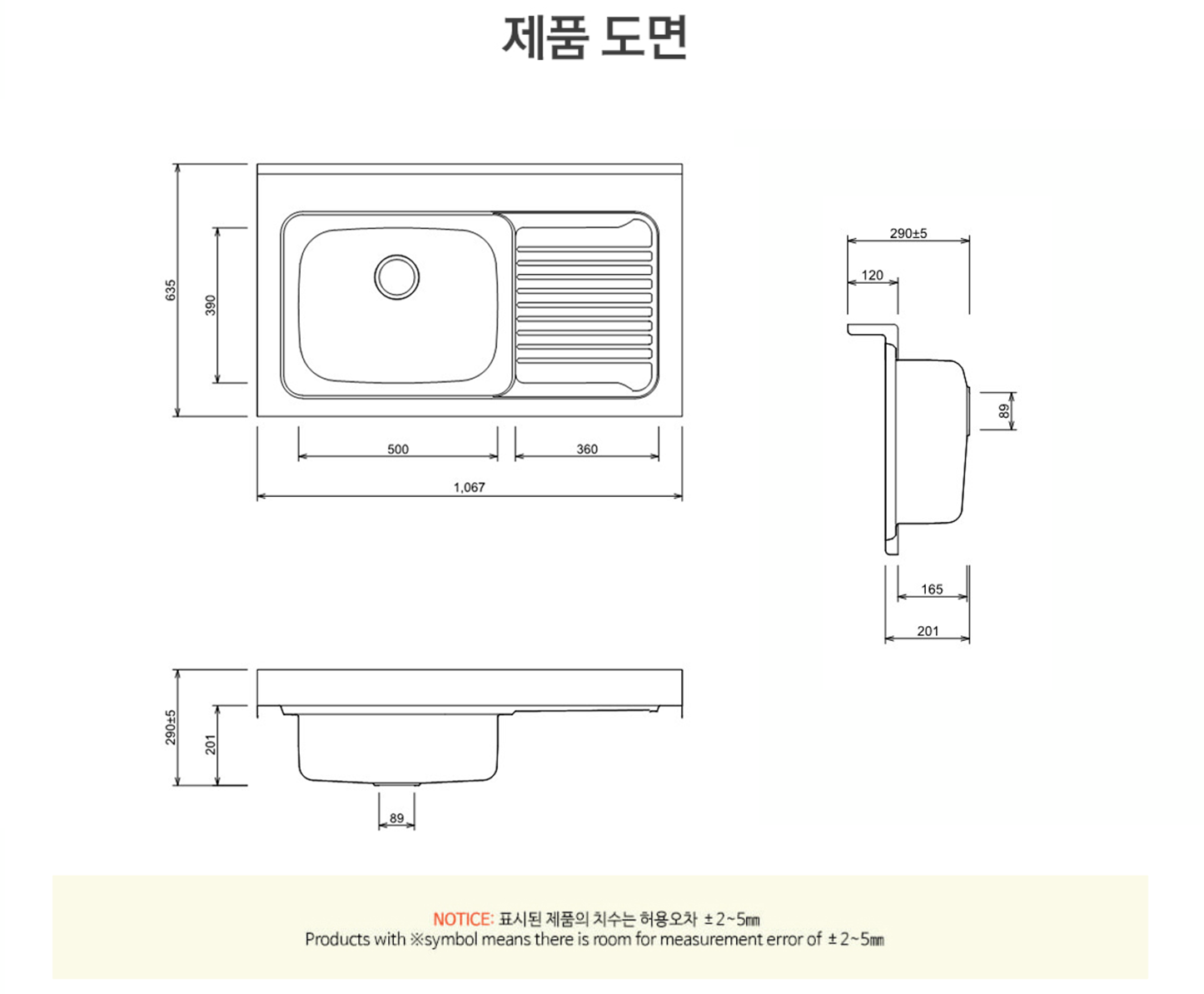 (가로, 세로 ±2mm / 높이 ±5mm)