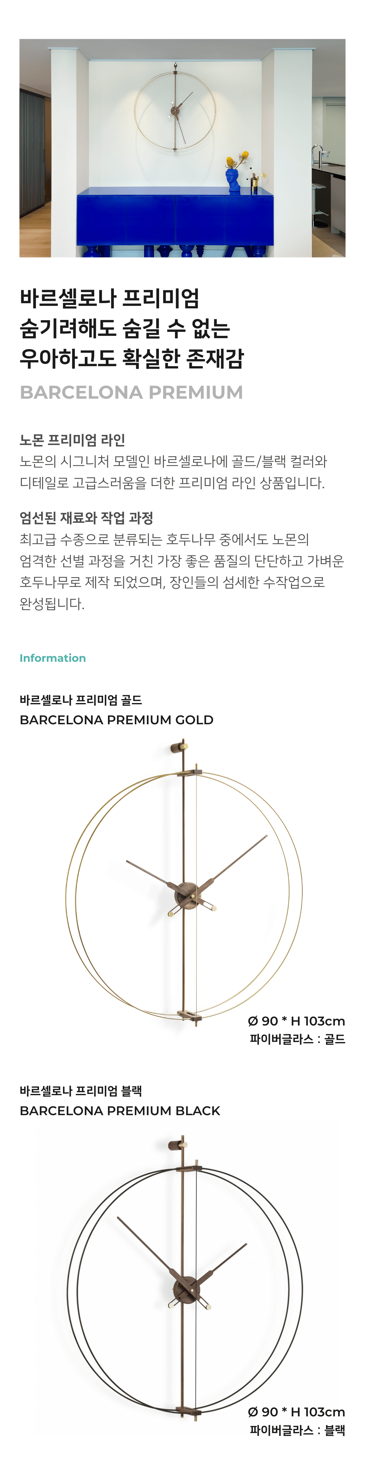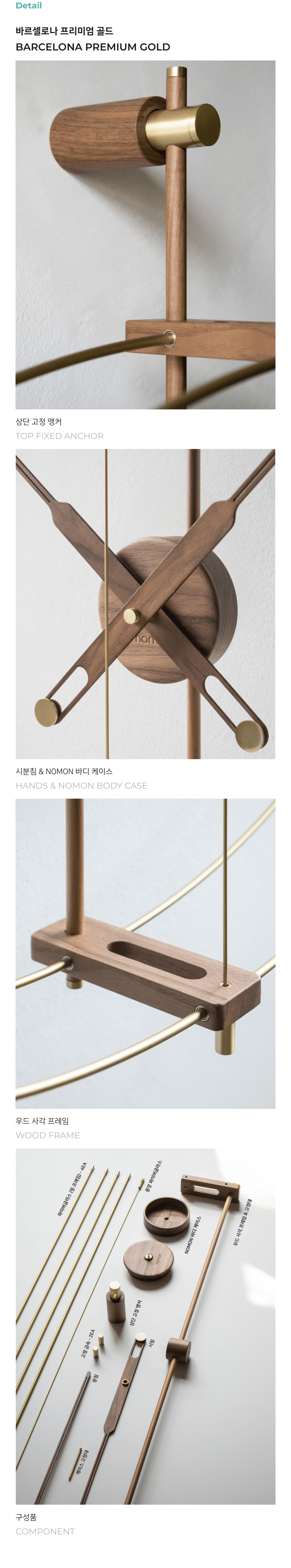 미니멀한 디자인으로 많은 사랑을 받고 있는 노몬의 시그니처 제품 바르셀로나의 프리미엄 버전으로 기존의 바르셀로나와는 또 다른 매력을 가지고 있습니다. 엄선된 재료로 만들어진 두 개의 링과 시곗바늘로 구성되어 있습니다.