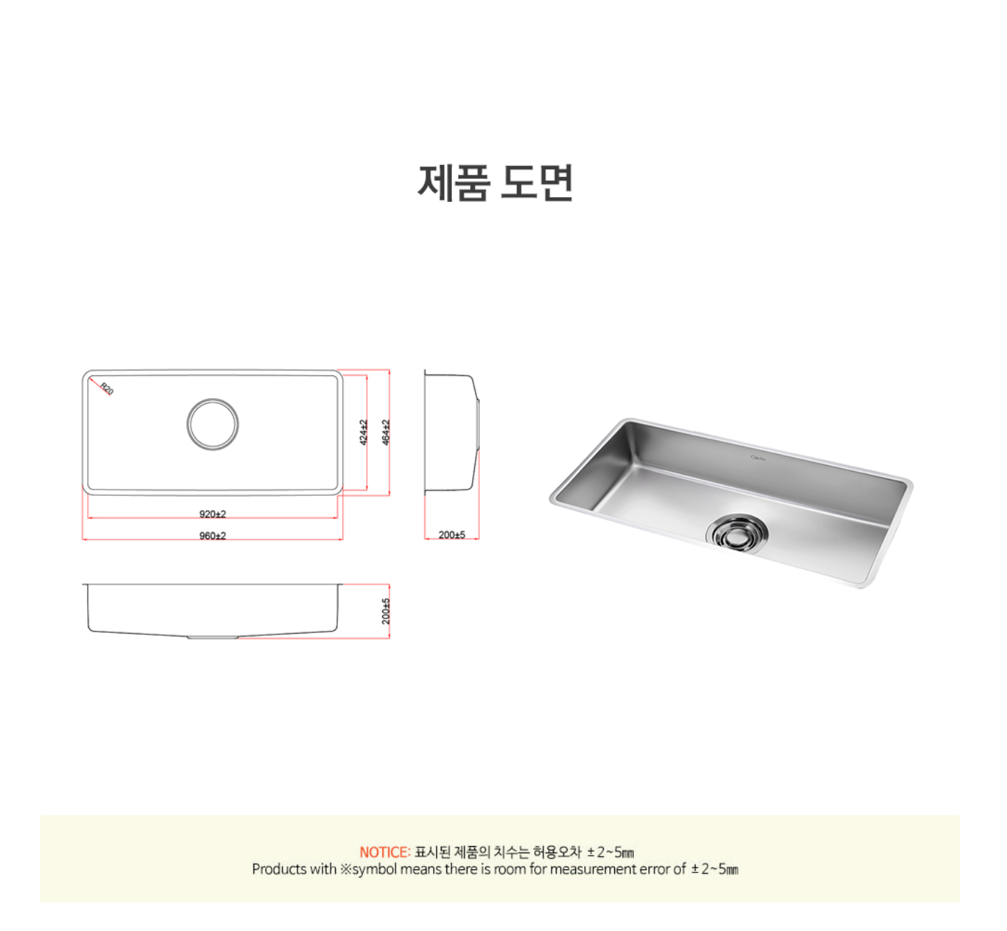 (가로, 세로 ±2mm / 높이 ±5mm)
